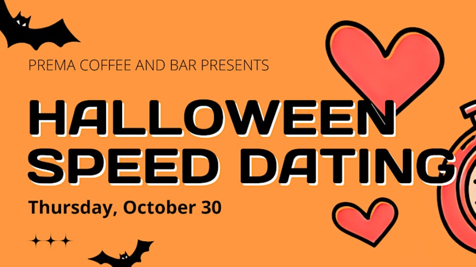 Come join us at Prema Coffee and Bar on October 30, 2025 at 8:00 PM for a spooky night of meeting new people!